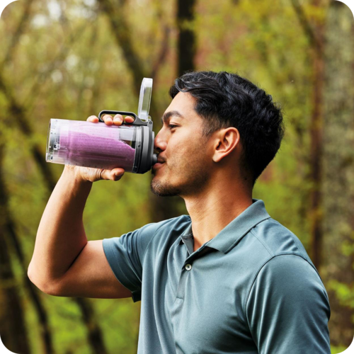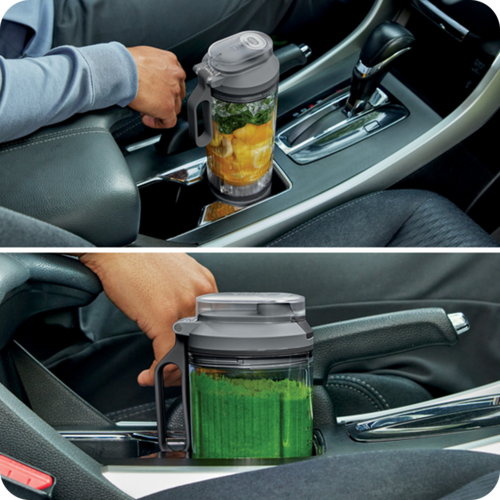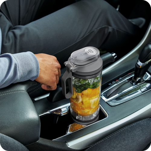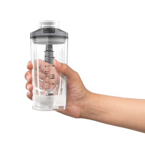 Recipientul detașabil de 570 ml* îți oferă libertatea de a prepara și consuma direct din aceeași cupă. Realizat din Tritan fără BPA, acesta este prevăzut cu un capac anti-scurgere și cu mâner de transport integrat, fiind ideal pentru a-l lua cu tine la sală, la birou sau în excursii.