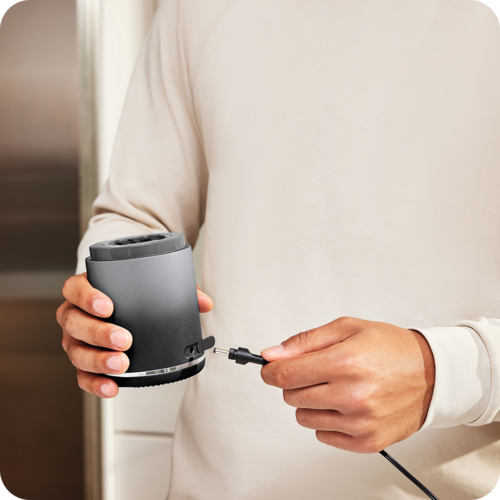 O încărcare completă îți oferă până la 25 de utilizări, ceea ce îl face ideal pentru deplasări, festivaluri sau picnicuri. Cu ajutorul butonului dedicat POWER poți verifica rapid nivelul bateriei și te asiguri că blenderul nu pornește accidental în geantă.
