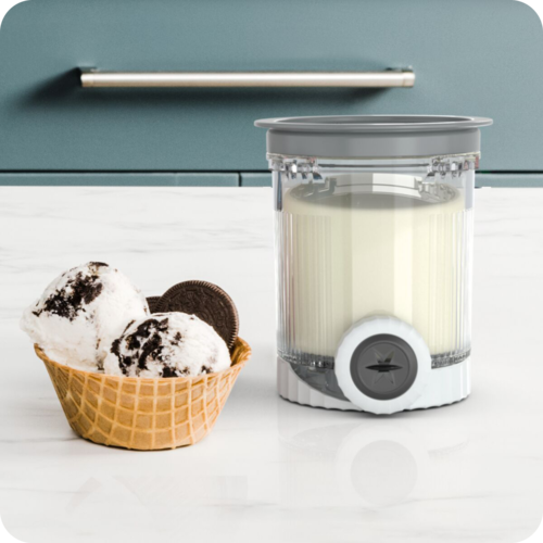 Fiecare tub de 480 ml permite prepararea a până la 4 cornete*, fiind ideal pentru prieteni sau familie. Păstrează tuburile suplimentare în congelator pentru deserturi gata de servit când poftești ceva dulce. Setul include 2 tuburi de 480 ml cu capace și duze.