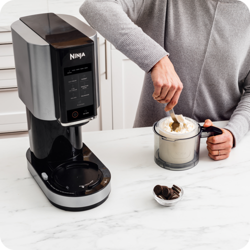 Cu aparatul de înghețată Ninja NC302EU poți personaliza fiecare desert după gustul tău. Adaugă fulgi de ciocolată, nuci, bomboane, bucăți de biscuiți sau cereale pentru un plus de savoare și textură. Programul Extra asigură distribuirea uniformă a ingredientelor suplimentare pentru un rezultat perfect, de fiecare dată. Poți chiar să personalizezi înghețata cumpărată din magazin, adăugând ingredientele tale preferate.